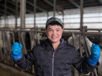 牛のお世話や清掃など、作業をわかりやすく、優しく教えてもらえるので、仕事がとてもしやすいです。搾乳の際に、牛をきれいにして清潔な状態で生乳を搾るように心がけています。搾乳量が多いとウレシイです。早く1人前になって、みんなに喜んでもらえるように、活躍したいです。