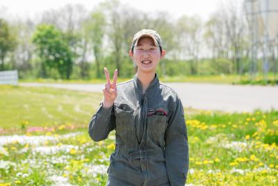 先生に勧められたのがきっかけで、ホームページを見ていいなと思っていました。インターンシップで酪農センターで哺育やパーラーなどの作業を、やさしく教えてもらえて、ここで働くイメージができたので、入社を決めました。学校の授業では、搾乳や給餌だけで、牛の体調不良や乳量低下を見つけるのは先生がしていましたが、今は自分たちでやらなければいけないので、大変ですが楽しくて、日々学びがあります。社会人になるとまとまった休みが取りづらいので、高校3年間は旅行などに行きたいのなら、いけるだけ行った方がいいと思います。あと、フォークリフトなどの資格を学生のうちに取っておくとよいと思います。